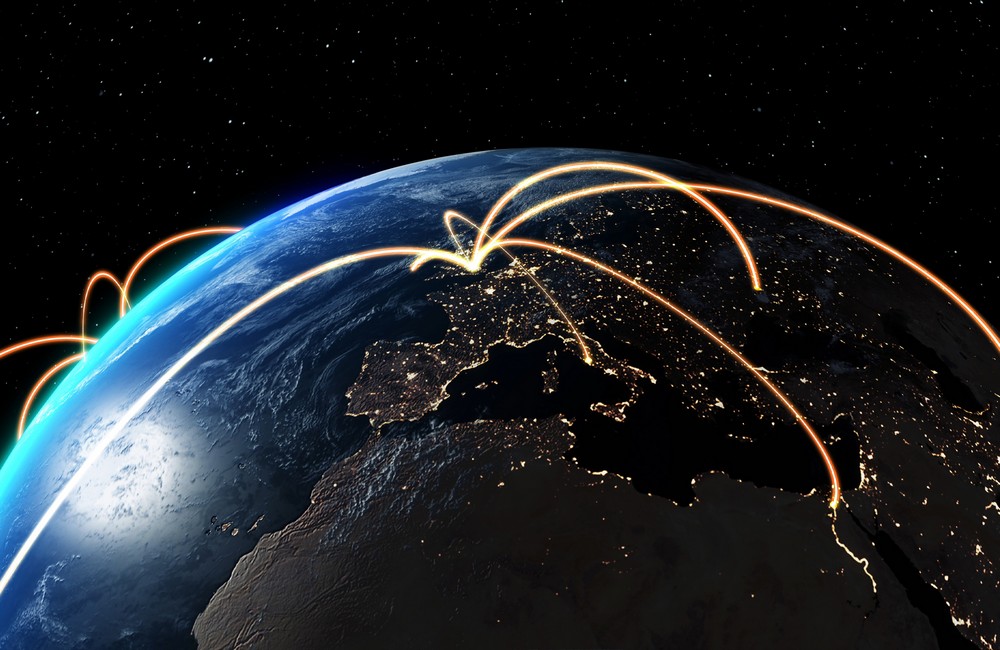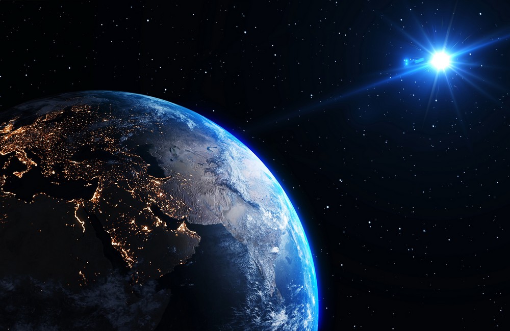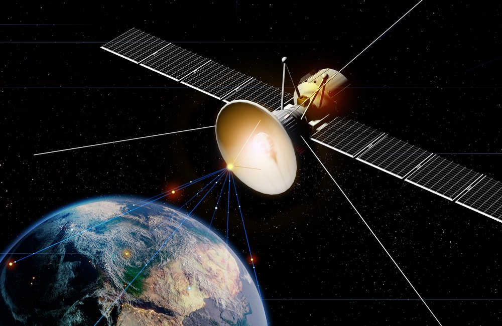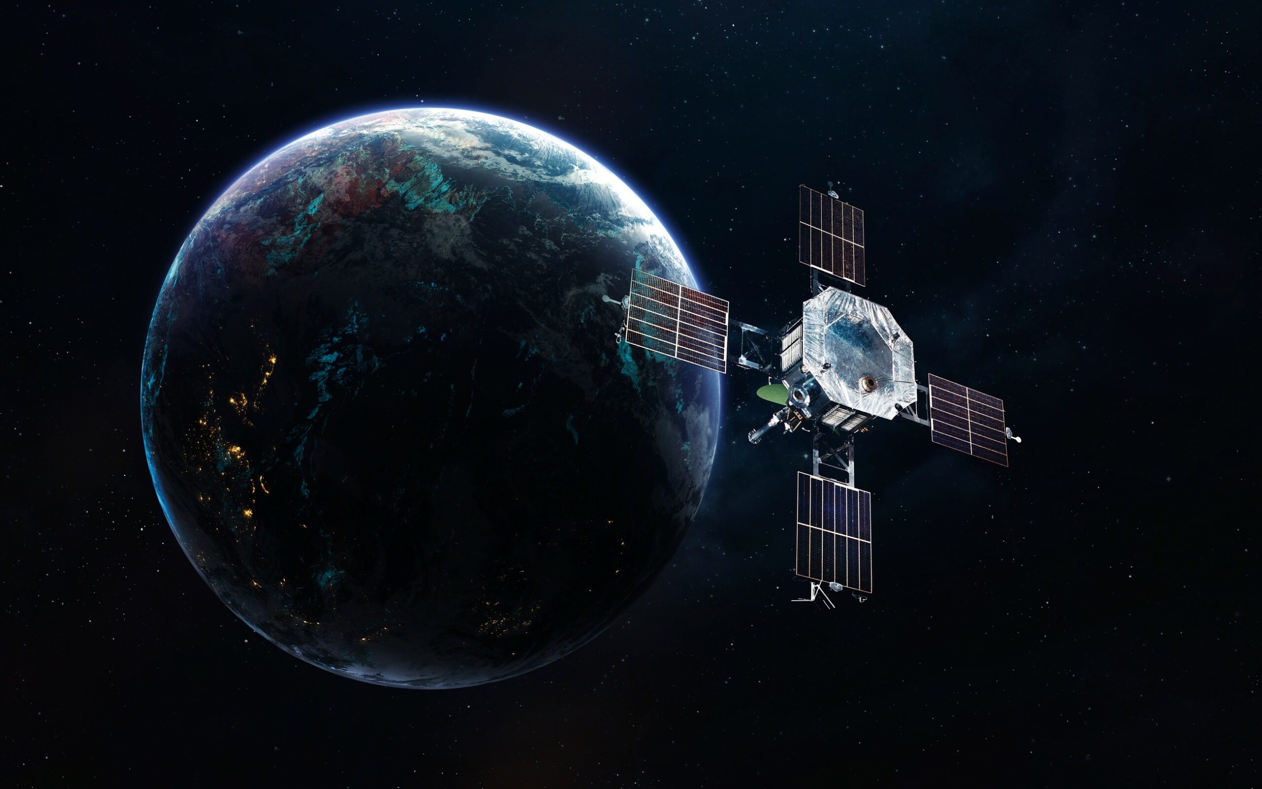 Earth orbit with satellite. Network connection. Communication of future. Elements of this image furnished by NASA